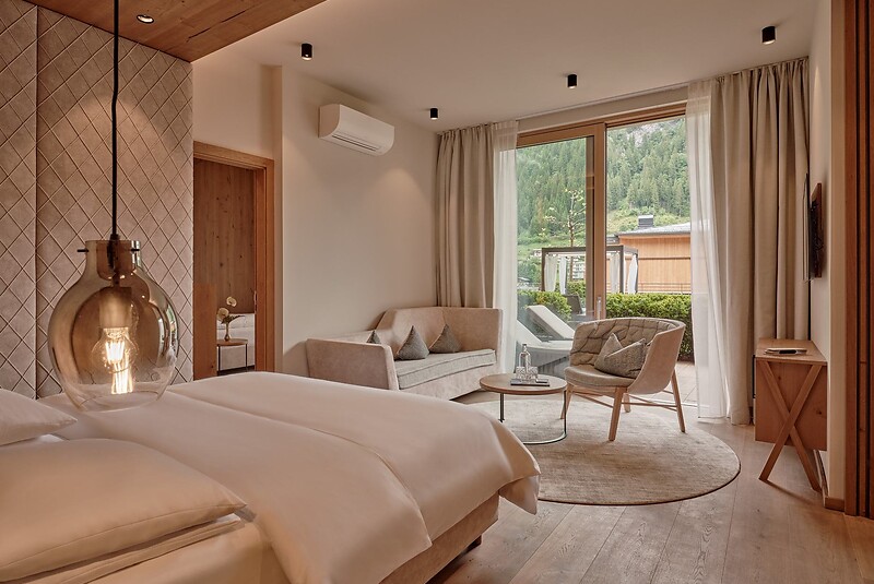 Entdecken Sie unsere stilvollen Zimmer und Luxus-Suiten in einem der besten Salzburger Wellnesshotels. Egal ob auf der Suche nach einem Hotel mit Whirlpool im Zimmer oder einer Suite mit Panorama. Erdige Farbtöne und natürliche Materialien wie Stein, Glas und Holz erzeugen eine warme Atmosphäre zum Wohlfühlen für Ihre Übernachtung in Großarl.