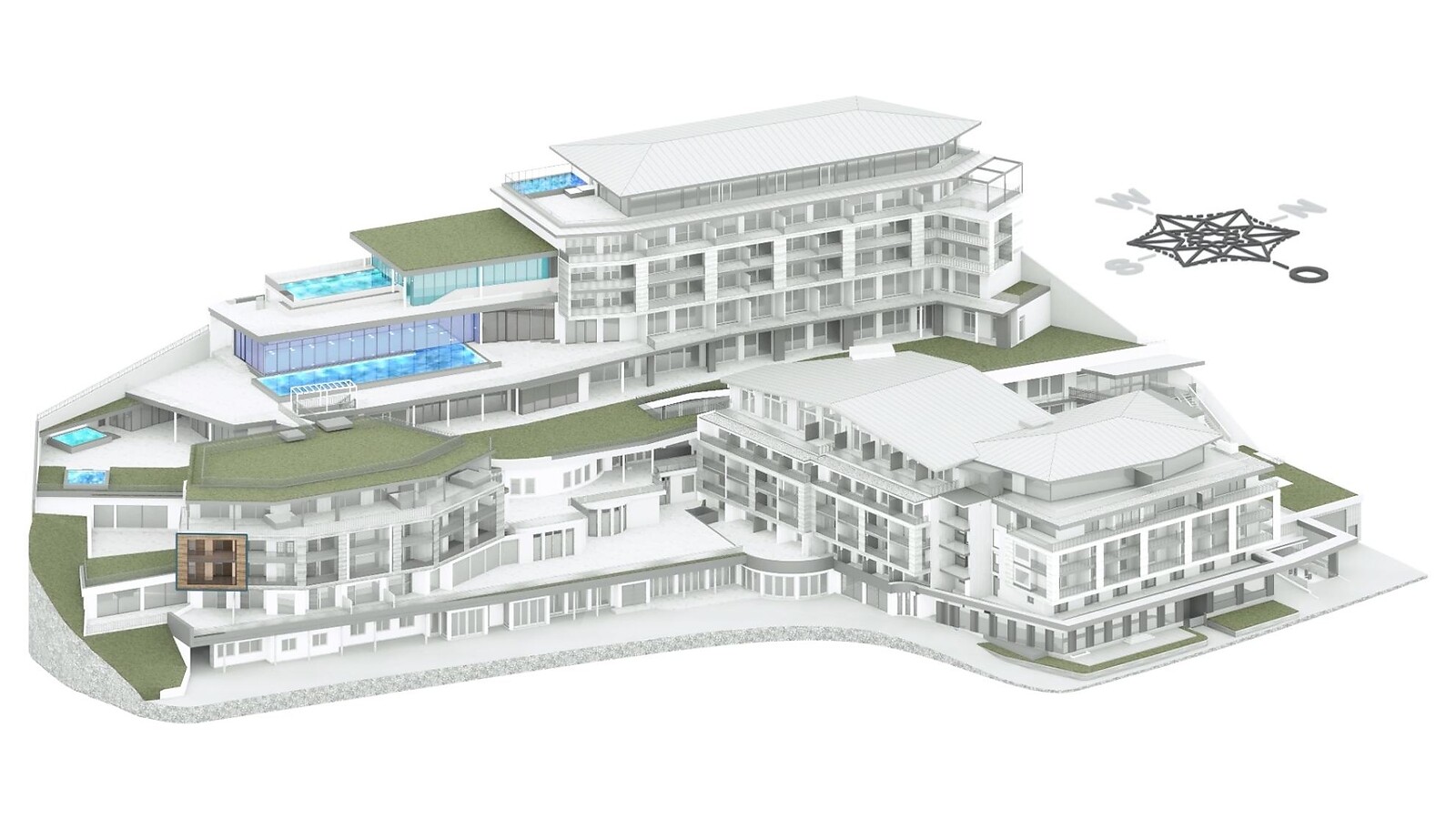 Blick nach Osten / Holzboden / 2 getrennte Schlafbereiche mit jeweils einem King Size Bett / ein zusätzliches Bett bietet vollen Schlafkomfort mit höchster Flexibilität für eine 5. Person / Ausziehcouch / Esstisch – gerne auch für ein privates Dinner / 2 Badezimmer mit Aqua Clean WC, Badewanne und Dusche Waschtisch mit Doppelwaschbecken / Dyson Supersonic Föhn / Klimaanlage / Minibar-Erstbefüllung inklusive / Kaffeemaschine & SMEG Wasserkocher / weitflächige Terrasse mit Sitz- und Liegemöglichkeit