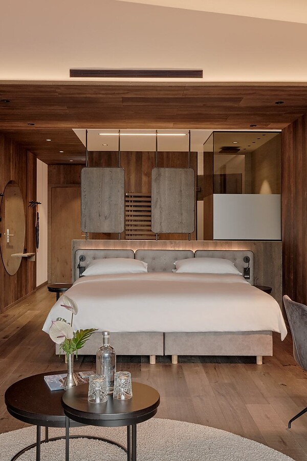 Das gemütliche Raumklima harmoniert bestens mit der linear-modernen Form der Einrichtung. Die Zimmeranordnung ist perfekt konzipiert damit man die grandiose Aussicht in die Großarler Bergwelt direkt vom Bett aus genießen kann.