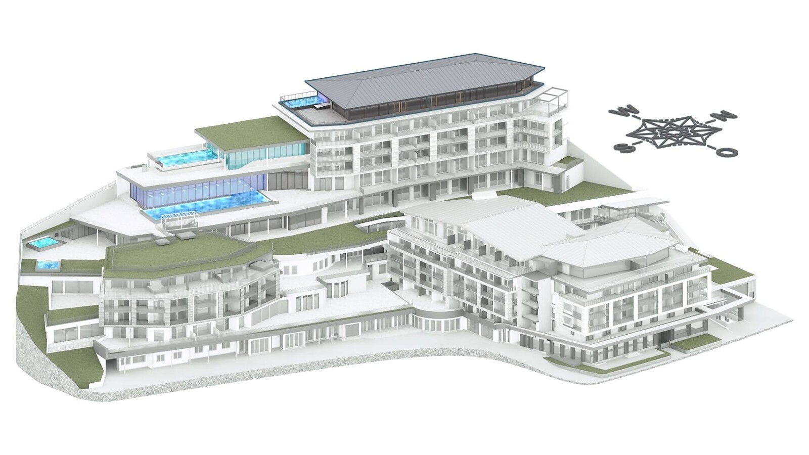 Rooftop Penthouse – Süd-Ost / Holzboden / 6 King Size Betten (räumlich getrennt) / Wohnbereiche mit 3 Ausziehcouchen & Effektfeuer-Kamin / eigener Weinschrank / Esstisch – gerne auch für ein privates Dinner / Sitzmöglichkeit / offener Schrankraum / Schreibtisch / Klimaanlage / Verdunkelungs-Jalousie / 6 Badezimmer mit Aqua Clean WC, Badewanne und Dusche & Waschtisch / Dyson Supersonic Föhn / Minibar-Erstbefüllung inklusive / Kaffeemaschine & SMEG Wasserkocher / Private finnische Sauna / eigener beheizter Suitenpool (Maße: 7 x 3, 35° C) auf der 200 m² weitflächigen Südterrasse mit Sitz- und Liegemöglichkeit / reservierter Tiefgaragenparkplatz