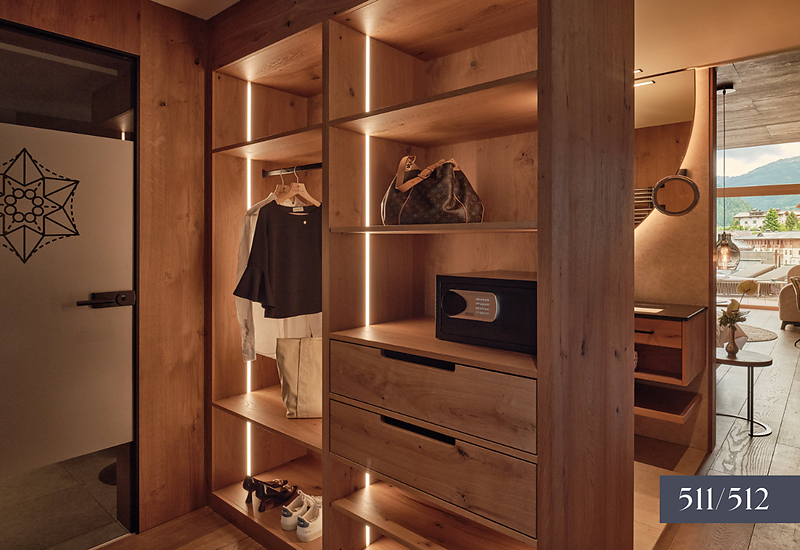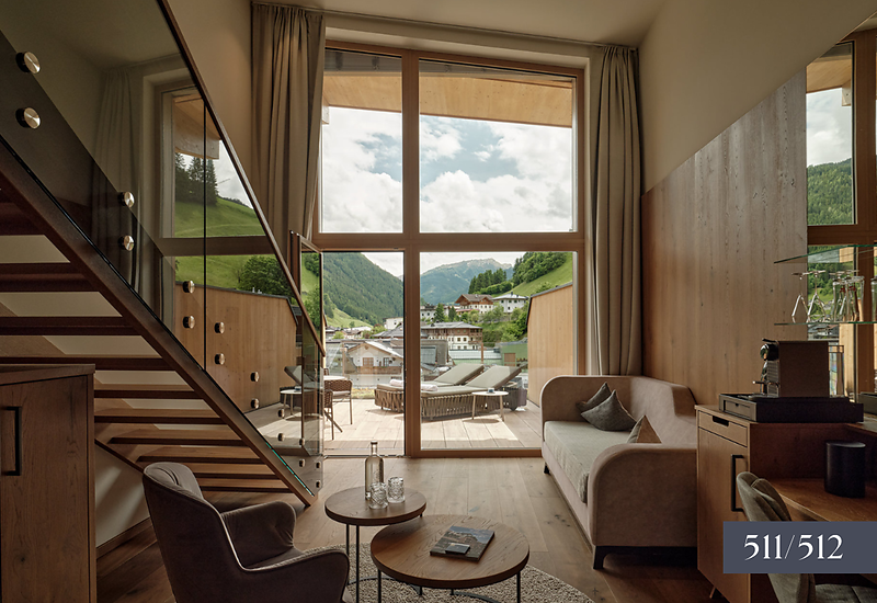 Die Suite mit gemütlichem Raumklima auf zwei Ebenen lebt vom raffinierten Understatement seiner eleganten Ausstattung und der Energie der Naturmaterialien. Diese Suite ist das harmonische Zusammenspiel zwischen offener Anordnung und großzügiger Raumhöhe mit bodenbündiger Glasfront.