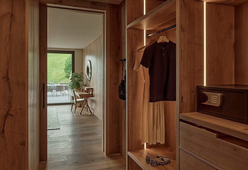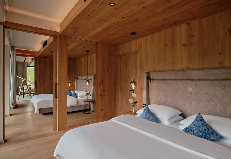 Rooftop Suite – Süd-Ost / Holzboden / 2 King Size Betten (räumlich getrennt) / Wohnbereich mit Ausziehcouch & Effektfeuer-Kamin / eigener Weinschrank / Esstisch – gerne auch für ein privates Dinner / Sitzmöglichkeit / offener Schrankraum / Schreibtisch / Klimaanlage / Verdunkelungs-Jalousie / 2 Badezimmer mit Aqua Clean WC, Badewanne und Dusche & Waschtisch / Dyson Supersonic Föhn / Minibar-Erstbefüllung inklusive / Kaffeemaschine & SMEG Wasserkocher / Private finnische Sauna / eigener beheizter Outdoor Pool (Maße: 7 x 3, 35° C) auf der 200 m² weitflächigen Südterrasse mit Sitz- und Liegemöglichkeit / reservierter Tiefgaragenparkplatz