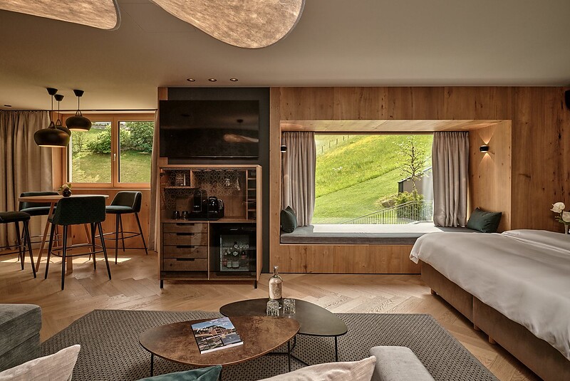 Discover our stylish rooms and luxury suites in one of the best wellness hotels in Salzburg. Whether you're looking for a hotel room with its own whirlpool, or a suite with breathtaking panorama. Earthy colours and natural materials including stone, glass and wood create a warm, feel-good atmosphere for your overnight stay in Großarl.