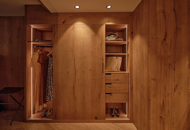 The high-quality furnishings in natural materials and subtle colors give the living ambience a simultaneously elegant and cozy flair.