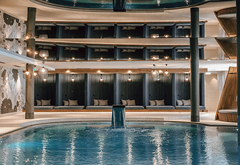 Family spa area in Salzburger Land with indoor pool and mirrored ceiling