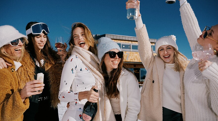 Zwei Sonnenliegen und runde Outdoor-Leuchten stehen auf einer großen Terrasse, dahinter ein grüner Hang mit dichtem Wald und klarer Bergkulisse.